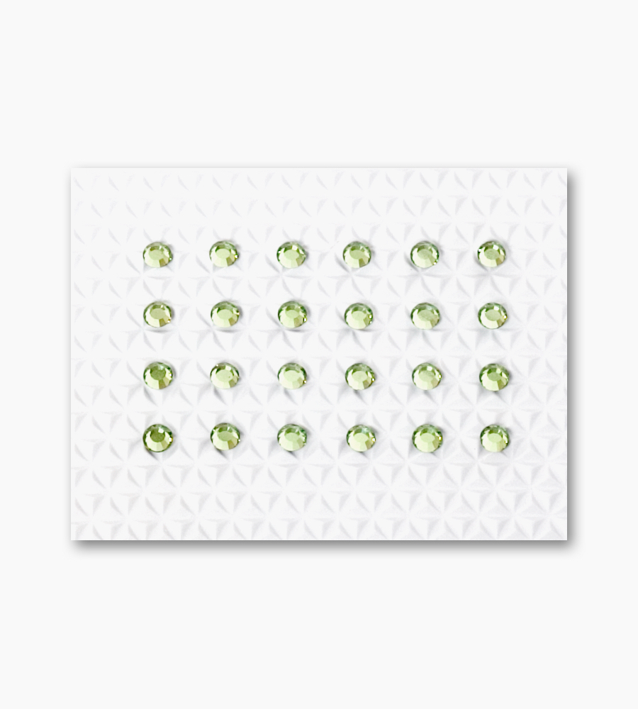 About Peridot Individual Self-Adhering Body Art Crystals 2.9 mm wide stones, 15 self-adhesive stones per strip Expand tab Minimize tab